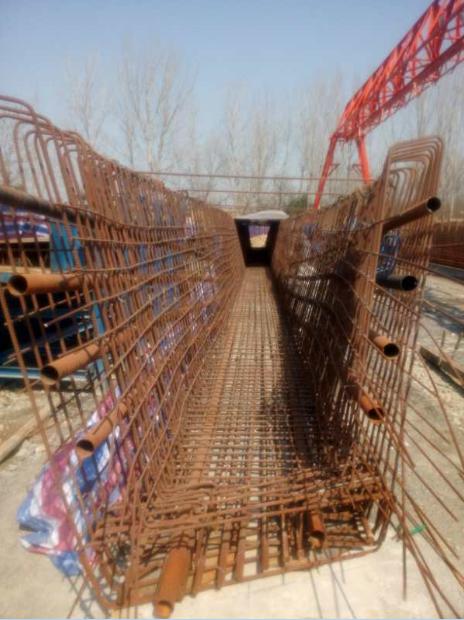 目前已完成了橋梁下部結構的施工,上部箱梁的預制工作正如火如涂的展開,已完成第一批箱梁鋼筋骨架綁扎、金屬波紋管固定及模板安裝的工作,并于2018年3月13日開始了首盤混凝土的澆筑。