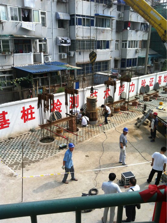 邦威公司技術(shù)人員:許勝、陶賢伍、江山、王浩正在進行樁基能力驗證、高應(yīng)變檢測、靜荷載檢測項目