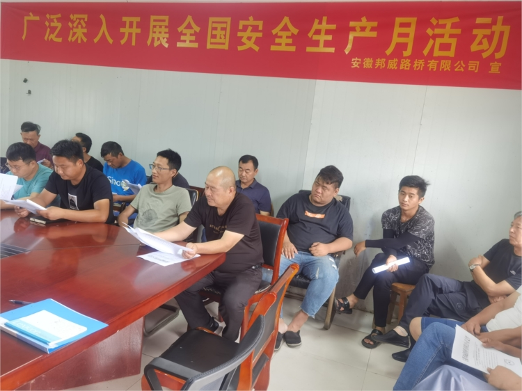 會(huì)議組織參會(huì)人員集中學(xué)習(xí)了《關(guān)于印發(fā)安徽邦威路橋有限公司2021年“安全生產(chǎn)月”活動(dòng)方案的通知》等安全生產(chǎn)文件,并且針對(duì)梅雨季節(jié)安全用電管理提出了相應(yīng)要求。會(huì)議進(jìn)一步明確了“落實(shí)安全責(zé)任、推動(dòng)安全發(fā)展”的安全生產(chǎn)月主題,并要求全體員工圍繞著該主題加強(qiáng)日常的安全理論學(xué)習(xí),提高自身的安全責(zé)任意識(shí)。
