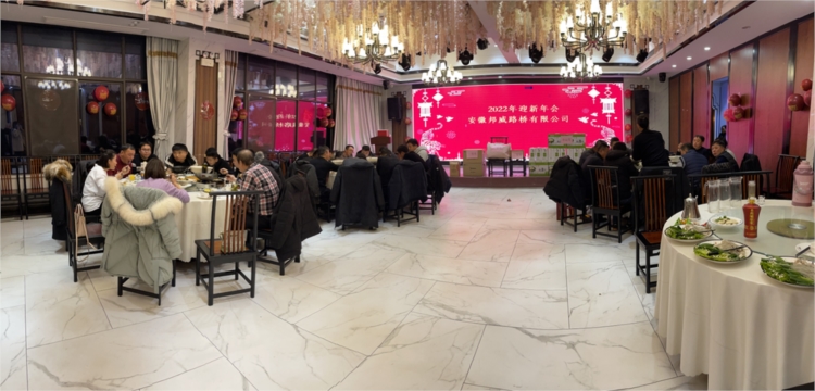 隨著趣味運動會的圓滿結(jié)束,全體人員移步酒店,參加安徽邦威路橋有限公司2022年迎新晚會。