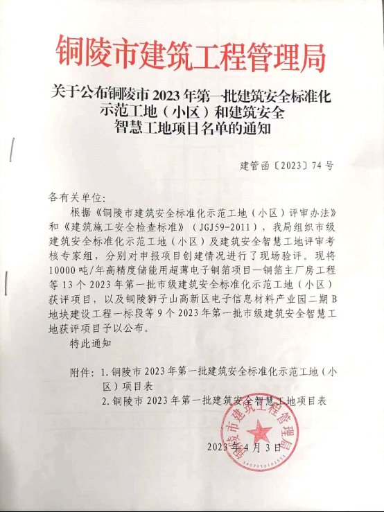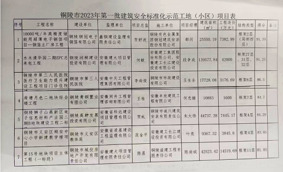 熱烈祝賀我公司承建的銅陵市第三人民醫(yī)院醫(yī)療衛(wèi)生能力提升建設(shè)工程項目門診住院樓(項目經(jīng)理:王生全)榮獲銅陵市2023年市級“建筑安全標(biāo)準(zhǔn)化示范工地(小區(qū))”及市級“建筑安全智慧工地”獎項。